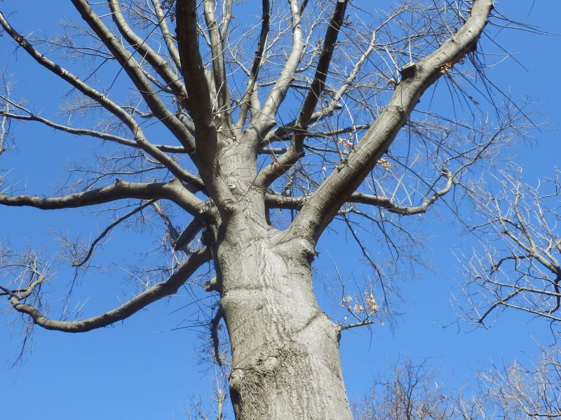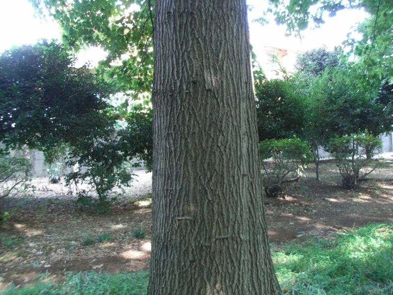 樹皮は灰黒色で、不規則に深い縦の割れ目が入る。