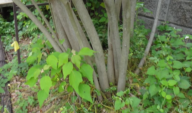 雌雄異株で、夏に枝先に円錐花序を出し、花弁がなく、