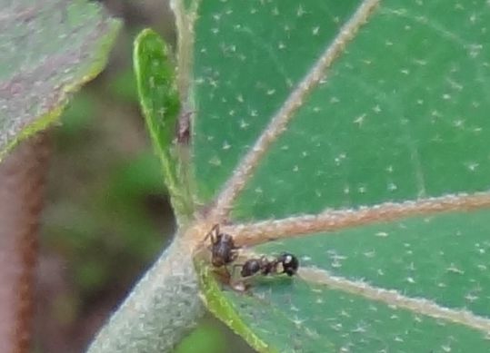 葉が葉柄につながる所の左右に蜜線が1つずつある。