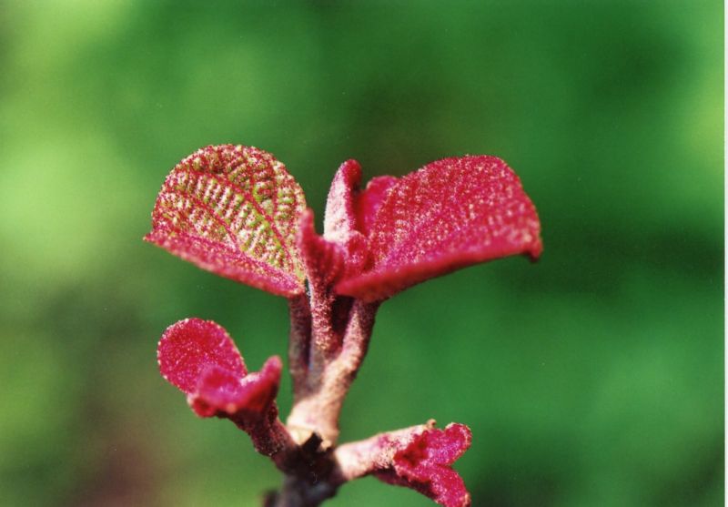新芽は赤い。Photo by H. O. (1999/5/8)