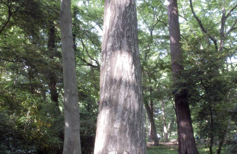 幹は直立し、樹皮は灰褐色〜暗灰色で、