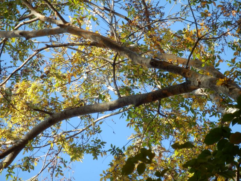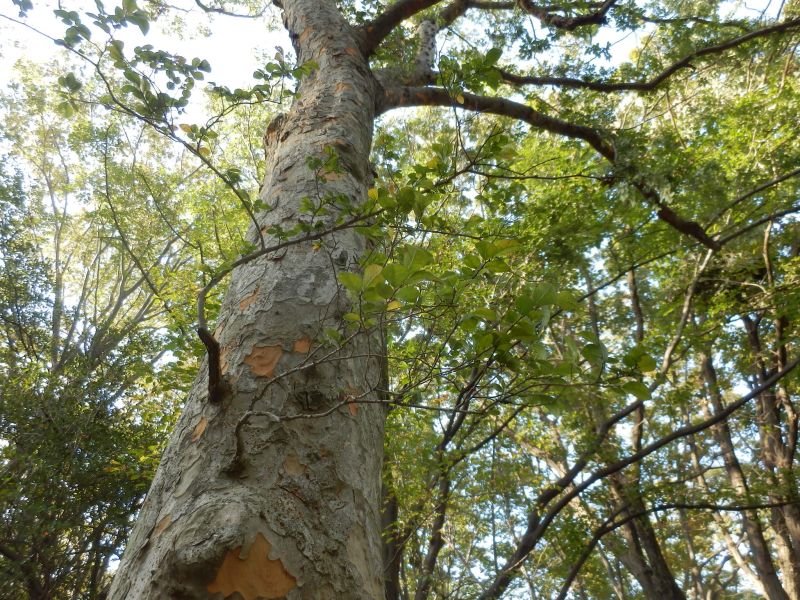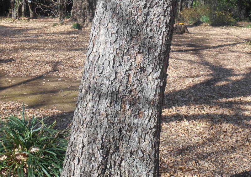 樹皮は灰緑色〜灰褐色で、鱗片状にはがれてまだら模様ができる。