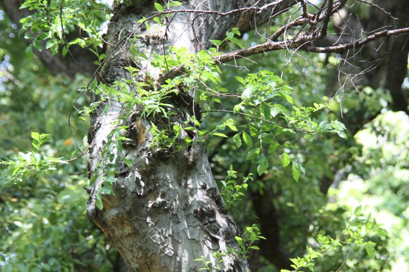 樹皮は灰緑色〜灰褐色で、まだらにはげる。(2015/5/10)
