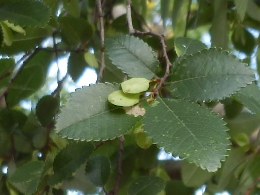 果実は翼果であり、長さ1センチぐらいの扁平な広楕円形で、