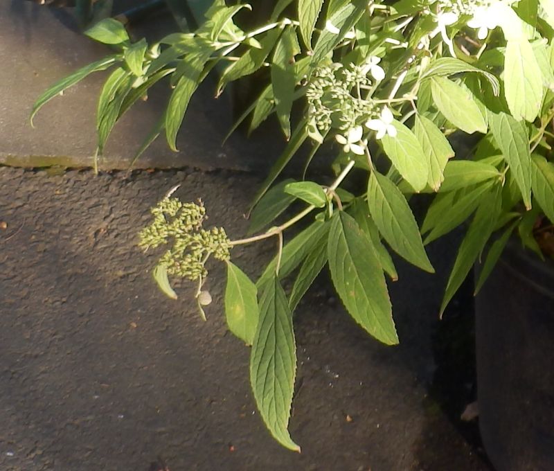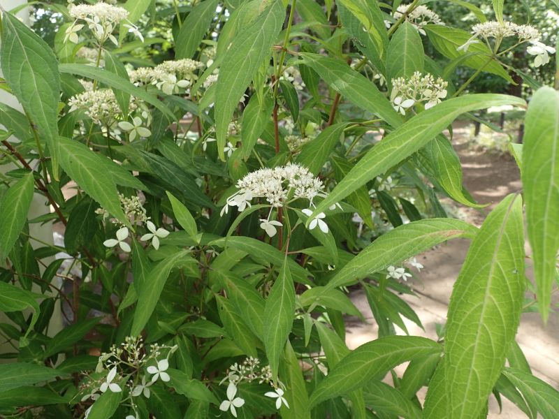 初秋に葉を乾燥させて発酵させたものを煮出すと、甘茶ができる。