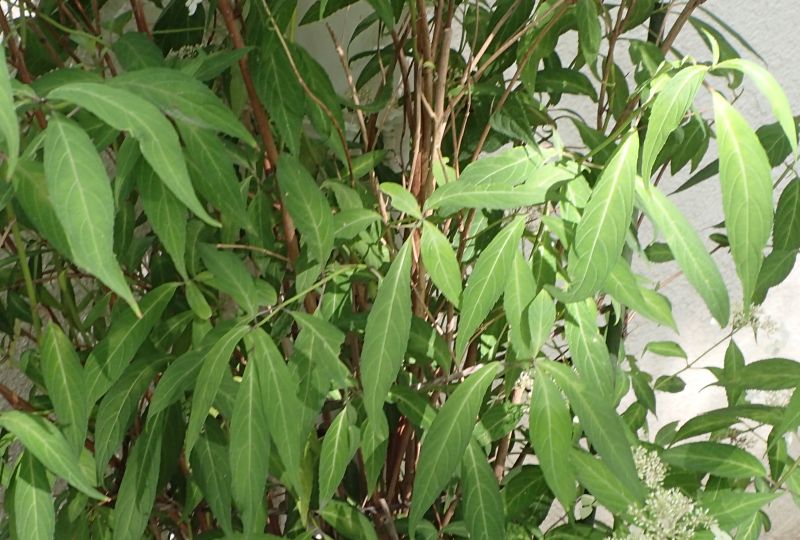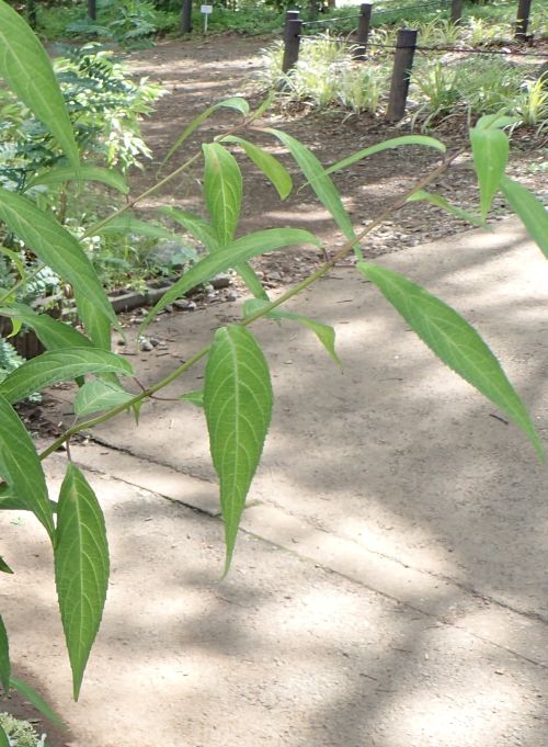 葉は長さ5〜10センチの細長い披針形で、まばらな鋸歯があり、