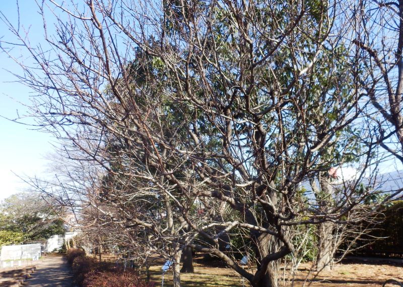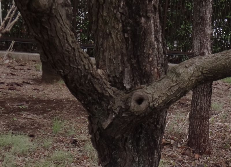 老木の樹皮は赤褐色〜黒褐色になってひび割れる。(2016/3/16)
