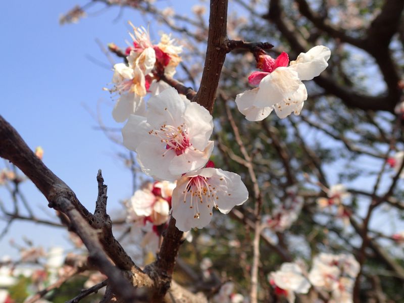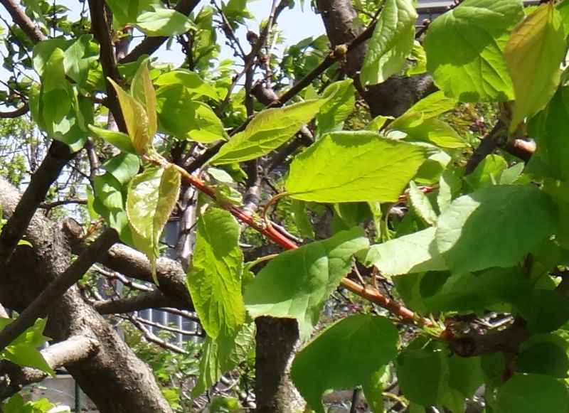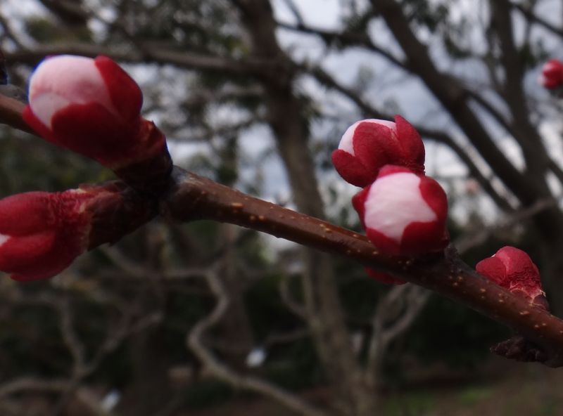 蕾は淡紅色で、5枚の萼が深紅色である。(2016/3/16)