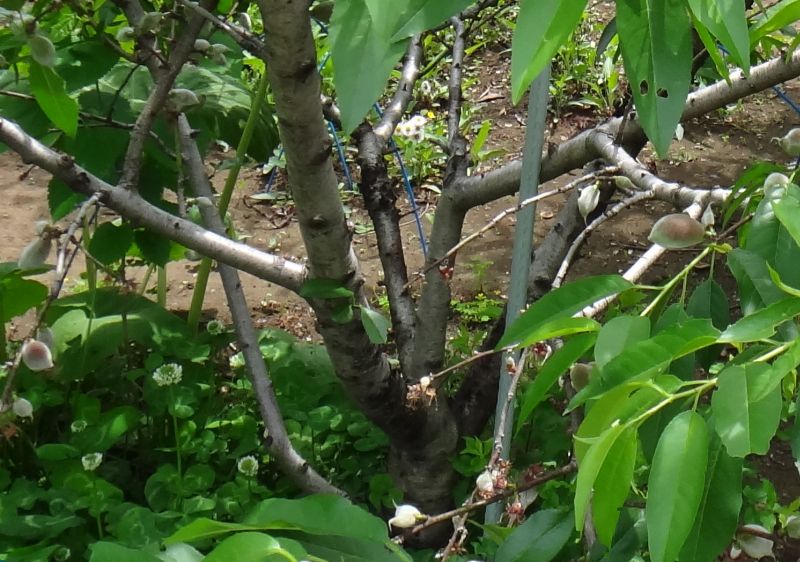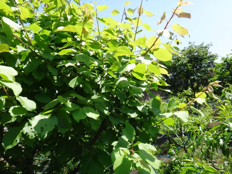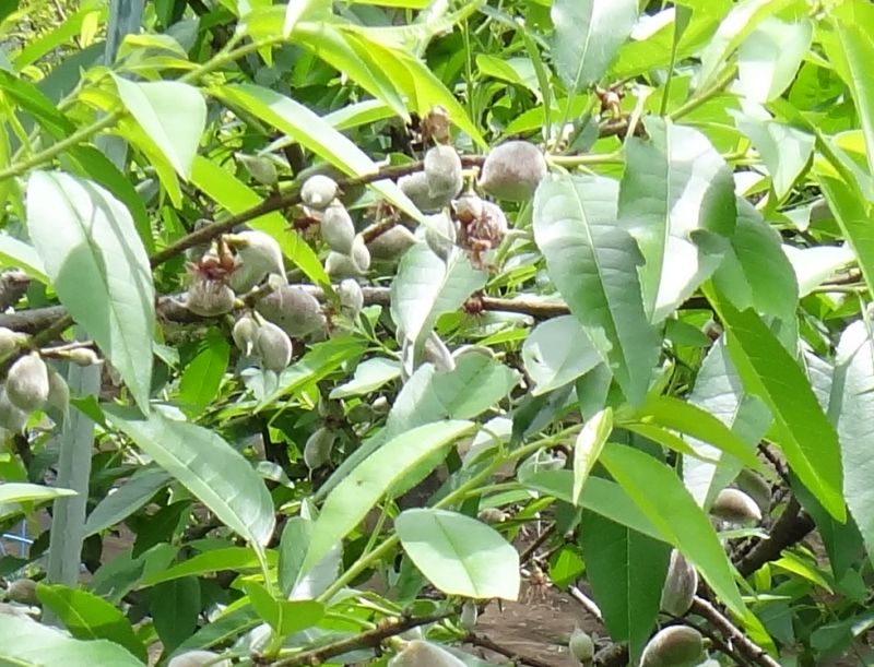 果実は直径約3センチの球形の核果で、片側に浅い溝があり、