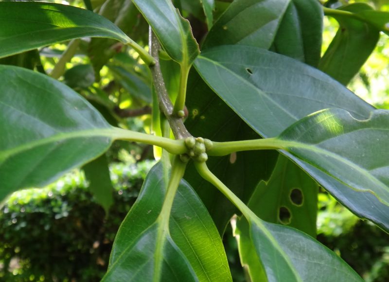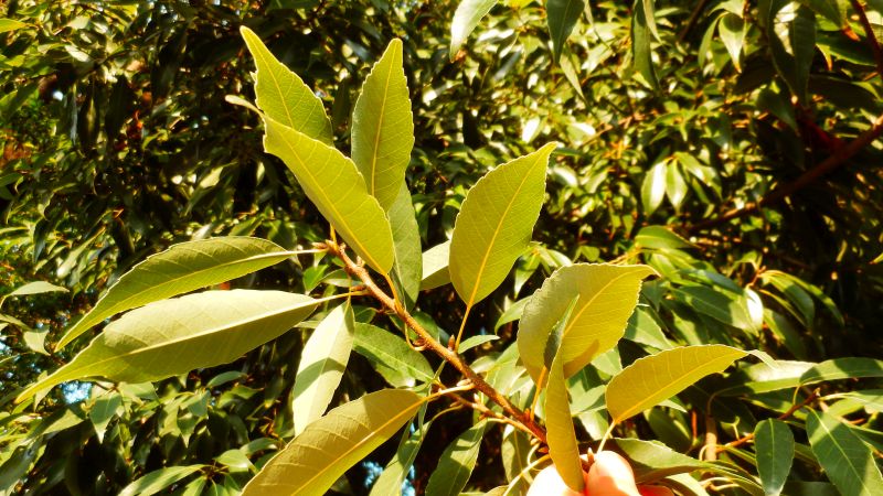 葉は先のとがった楕円形でかたく、長さが5〜10センチあって互生し、