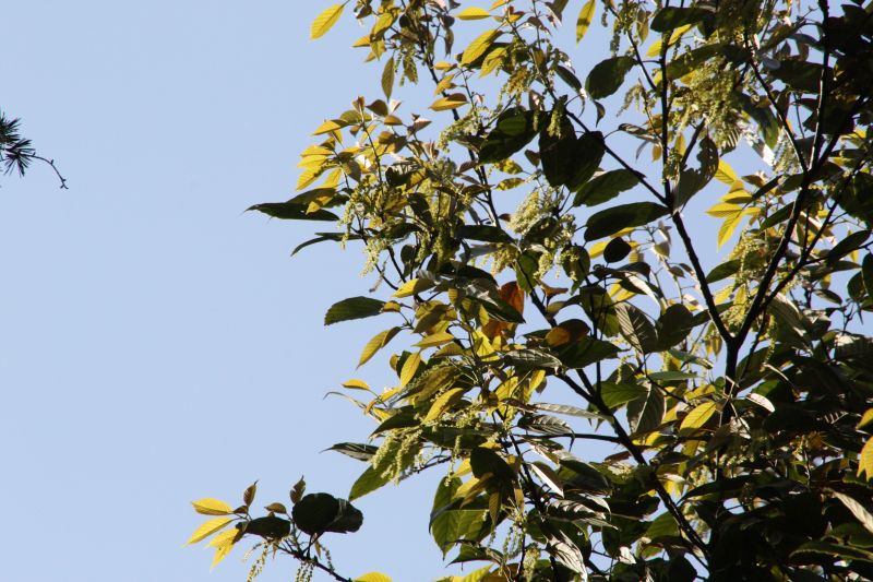 シラカシ:樹皮は黒くて葉が柔らかく、雄花は前年枝につき、雌花は新枝につき穂になる。