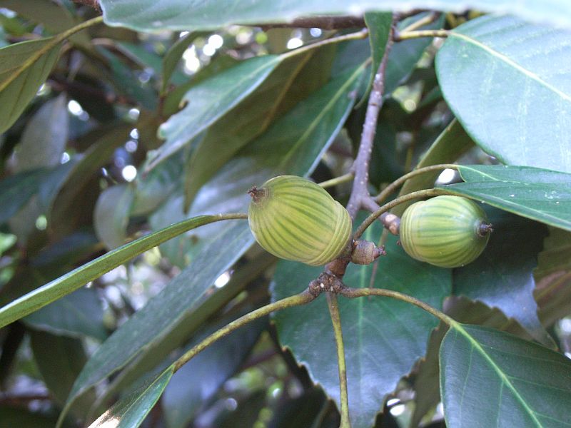 堅果は卵球形で縦縞があり、殻斗に同心円模様がある。