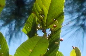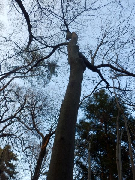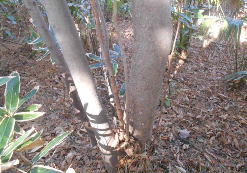 樹皮は紫色を帯びた灰色で、楕円形の皮目がある。