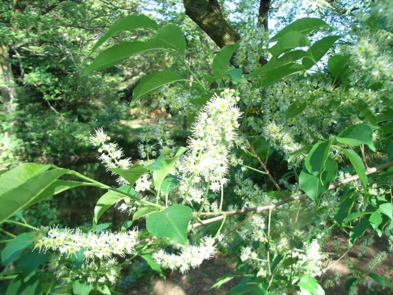 葉の展開とほぼ同時に白色の花を3〜5個ずつつける