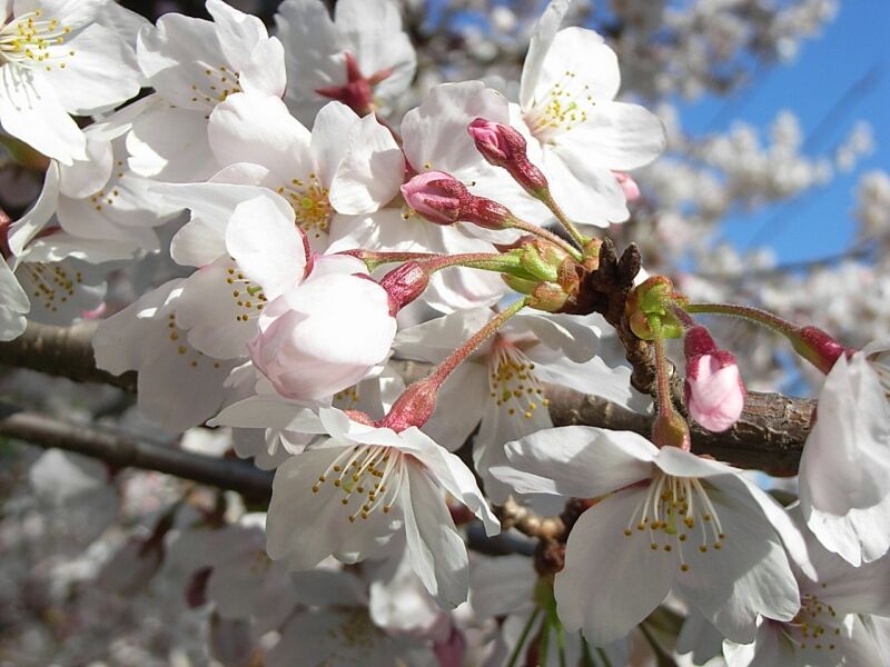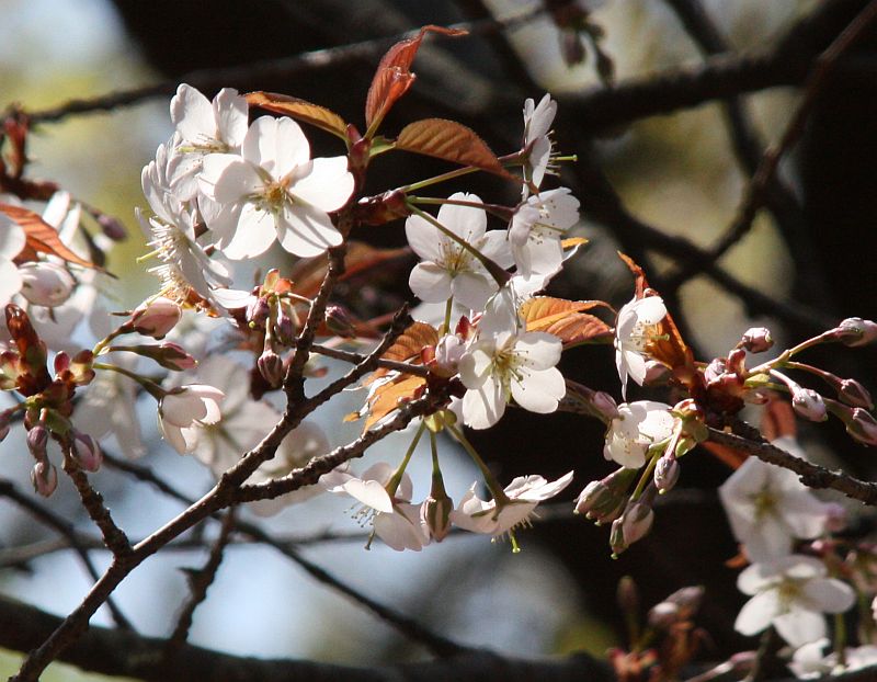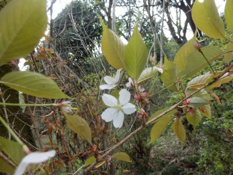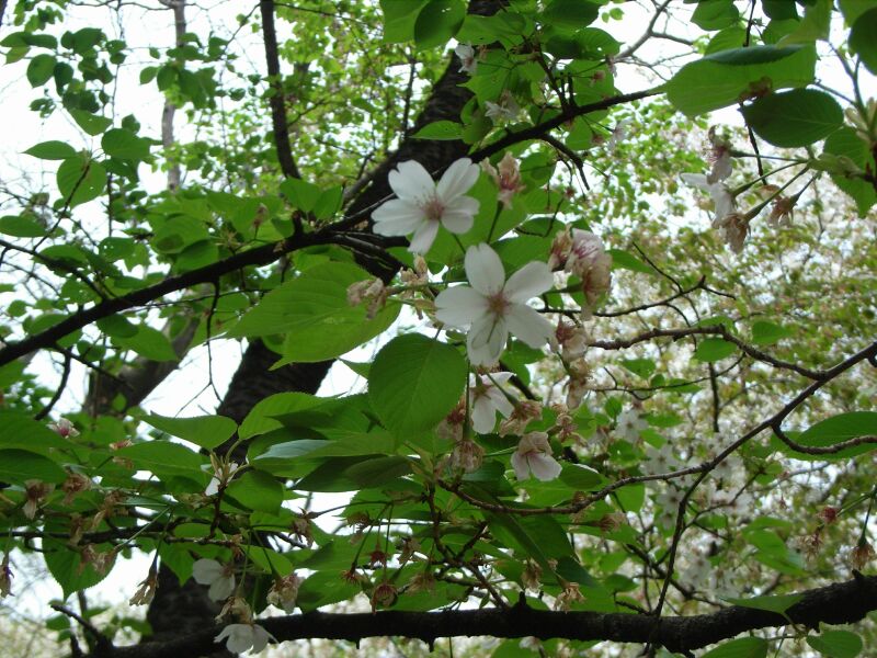 ヤマザクラに少し遅れて、葉の展開と同時に白色〜淡紅色の花を咲かせ、