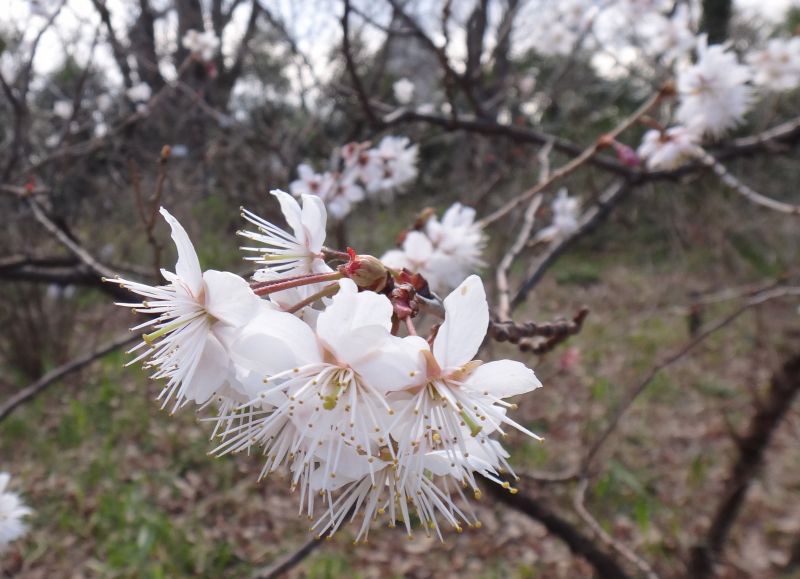 まだ寒い2月ごろから淡紅色の5弁花が群がって咲く