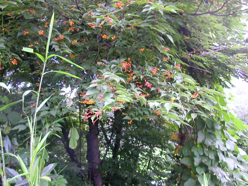 果実は熟すにつれて緑、黄色、赤、黒と変色する