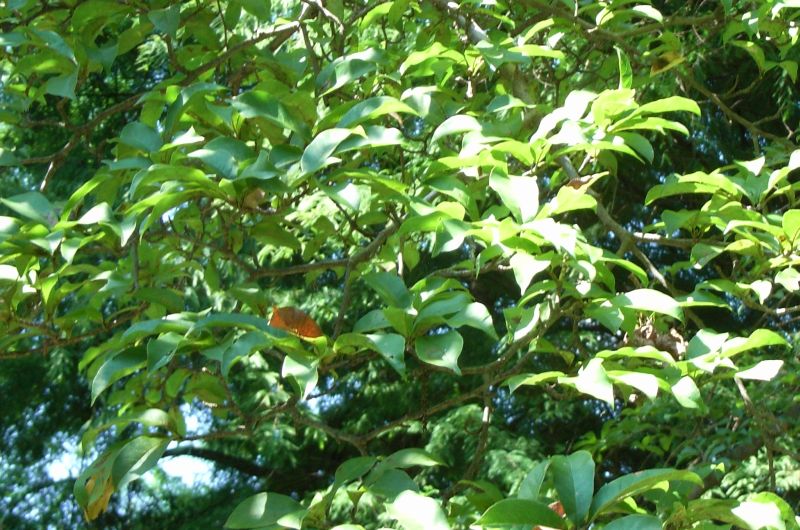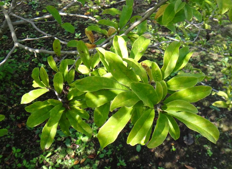 長楕円形で全縁の葉が枝先に集まって互生する。(2017/10/18)