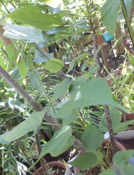 葉は先の尖った卵形で、全縁であり、葉柄が長く、螺旋状に互生する。