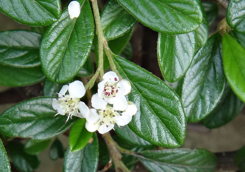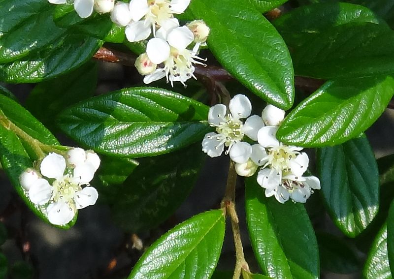 初夏に直径6ミリぐらいの白か紅色の5弁花を葉腋に散房状に咲かせる。