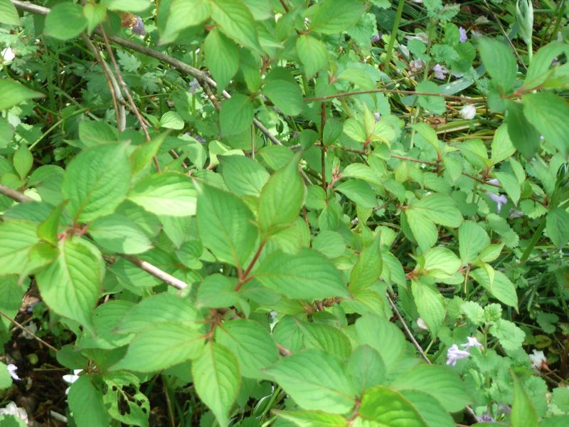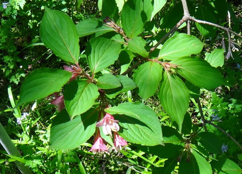ニシキウツギ :花が白→紅色に変化、萼有毛、葉裏脈上に毛。