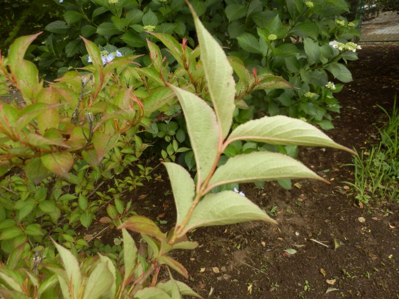 ハコネウツギ :花が白→紅紫色に変化、葉裏は無毛に近い。