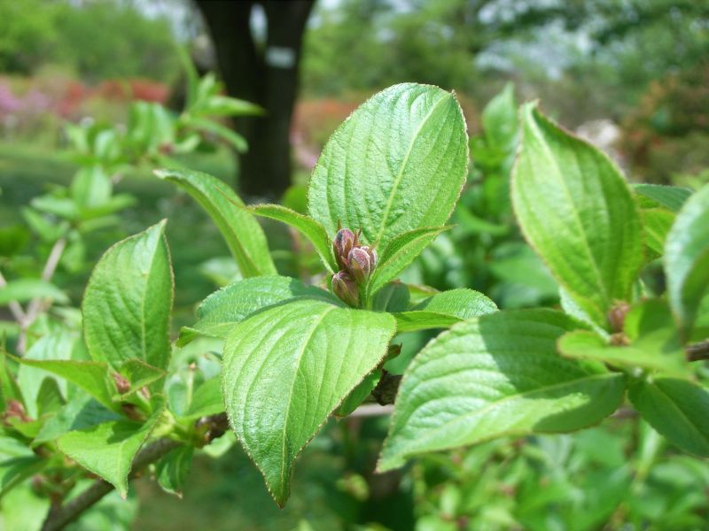 株立ちとなり、樹皮は灰褐色で縦に裂けてはがれ落ちる。