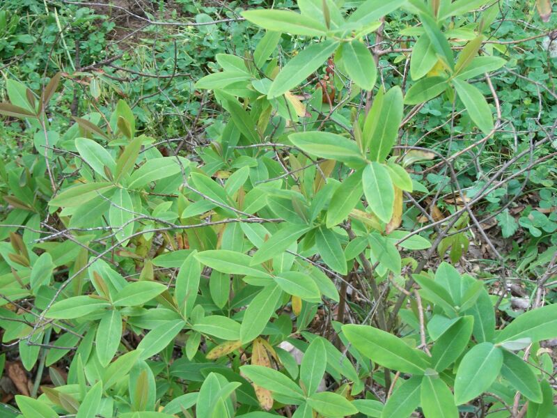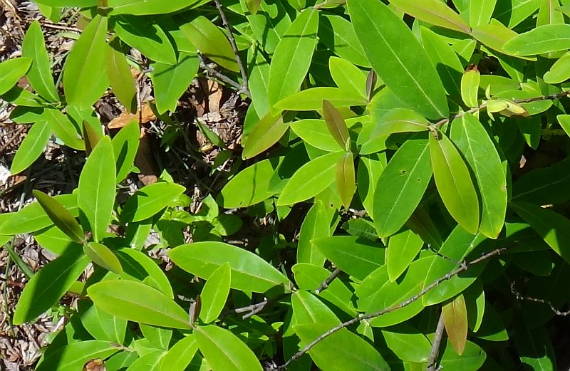 葉は全縁で長さ4〜8センチある狭楕円形で、十字対生するが、