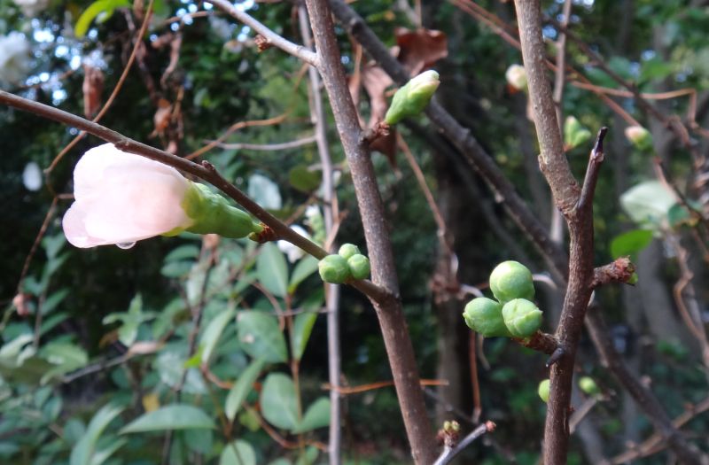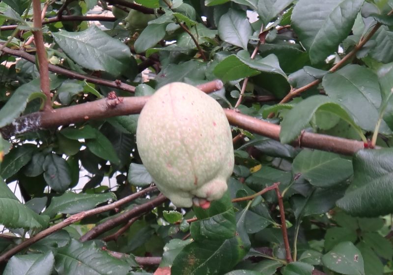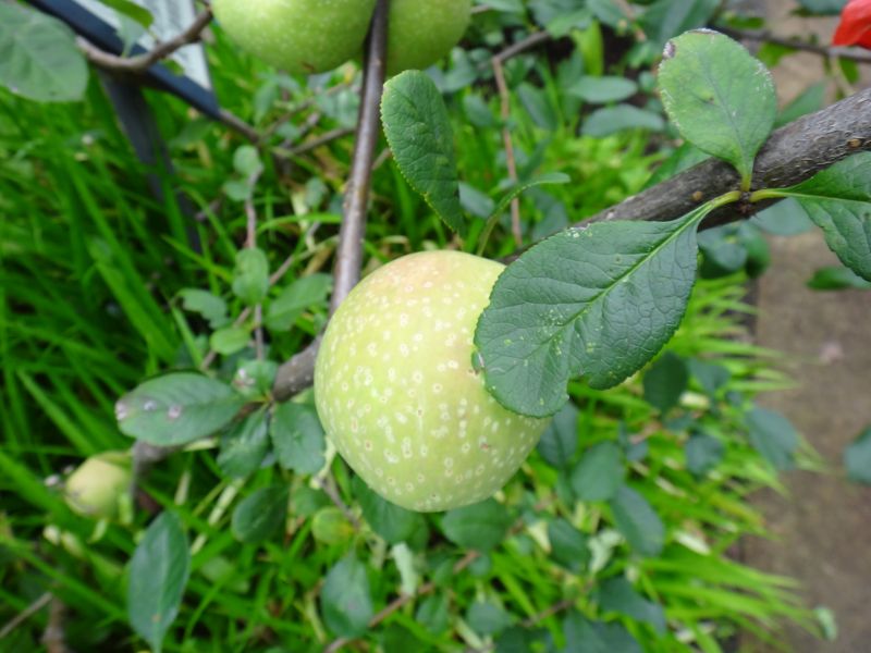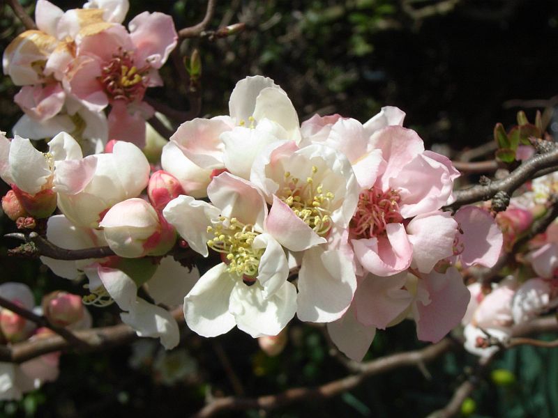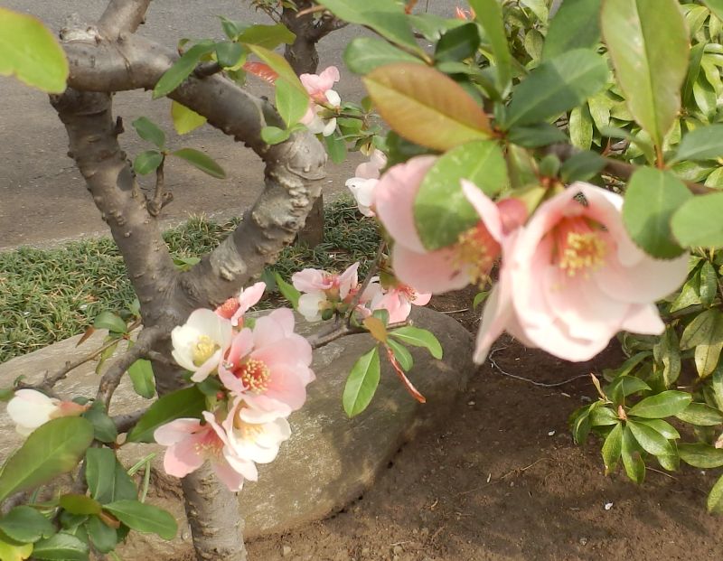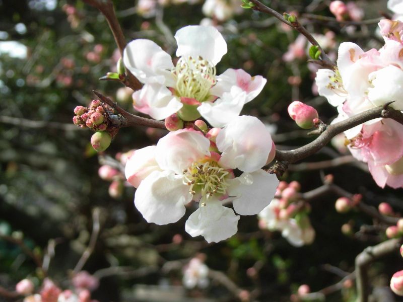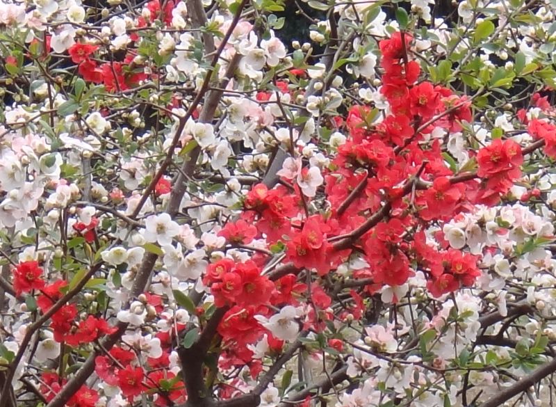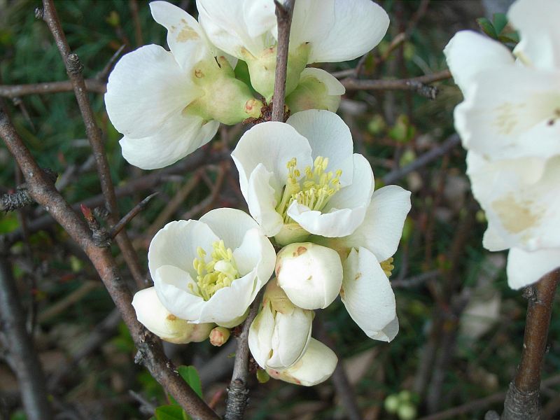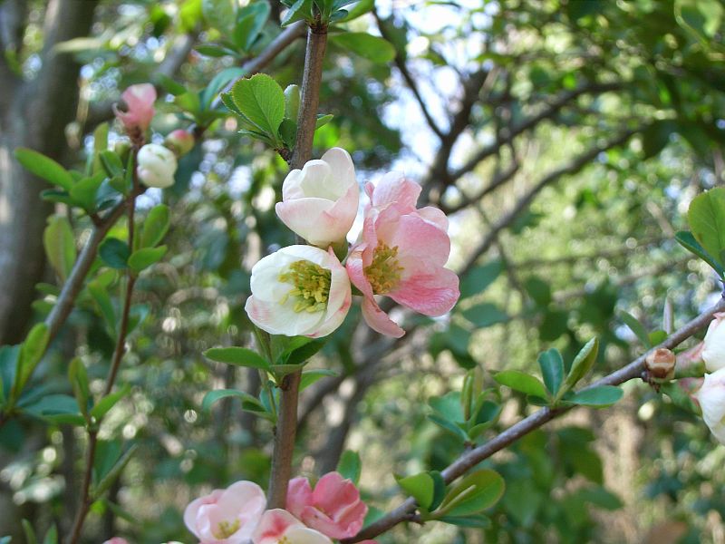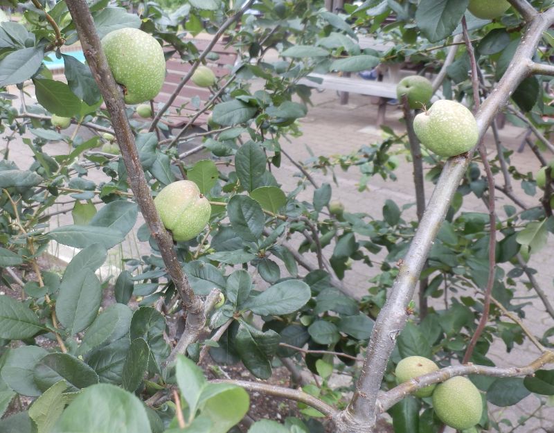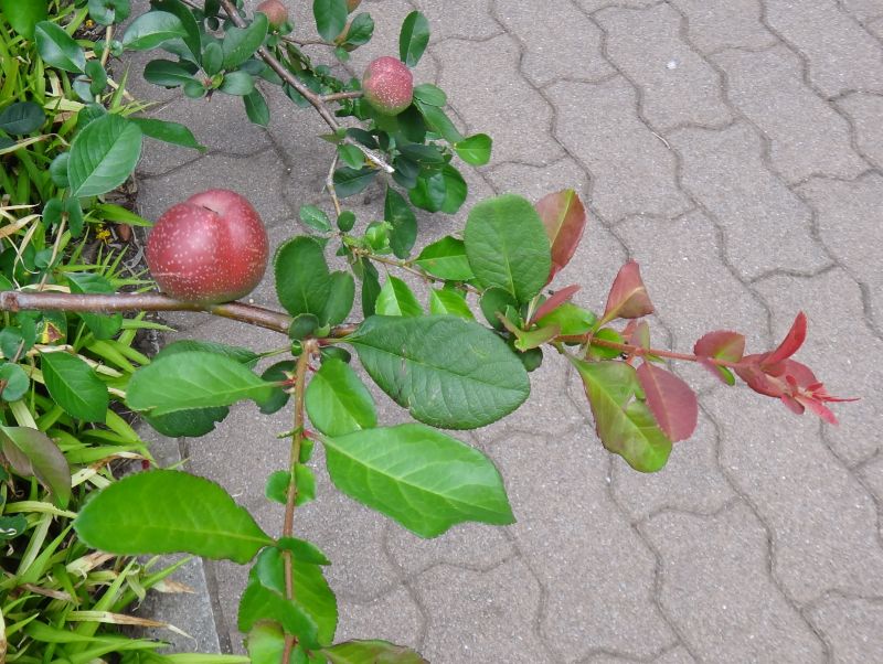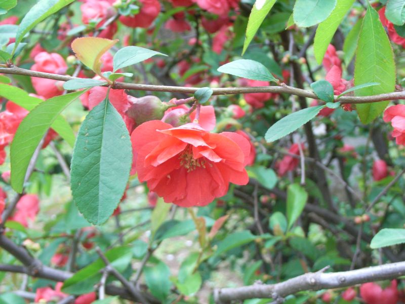 ボケ :高さ2メートル、花は赤または白、果実は5〜10センチ。