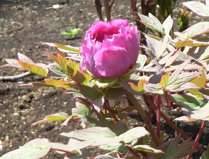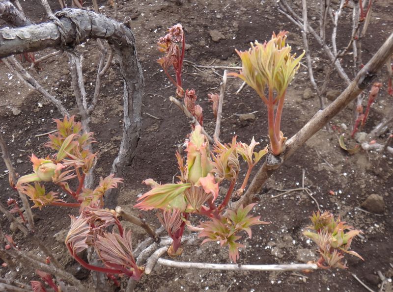早春に大きい花芽と葉芽がのびる。(2016/3/16)