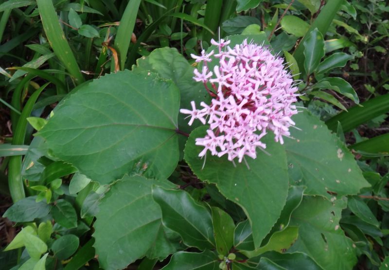 高坏形で先が5裂した薄紅色の花が、あじさいのように、
