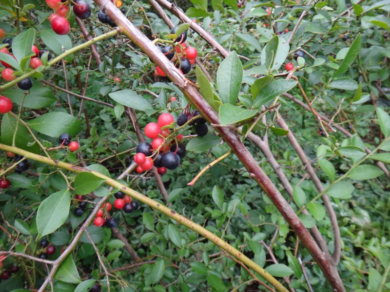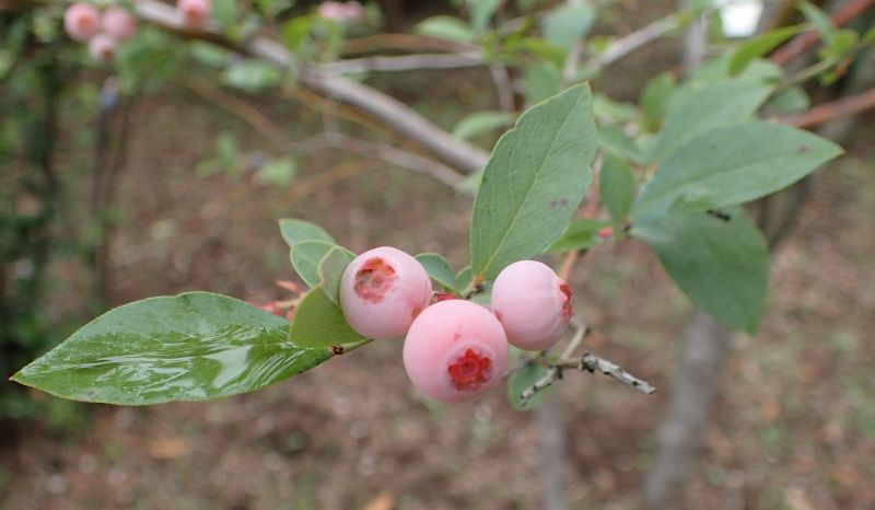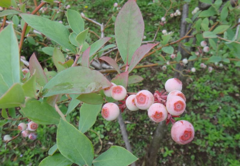 ブルーベリーの一種ビルベリー。果実は柔らかくて中まで青紫色。(2022/11/12)