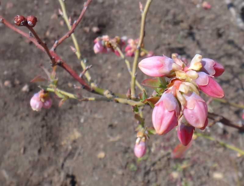 淡桃色を帯びた壺形の花が数個ずつ下向きに咲く。