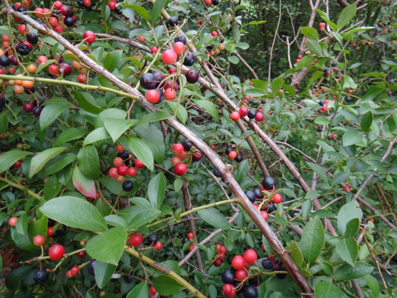 果実は黄緑色→赤色→黒紫色と変化する。