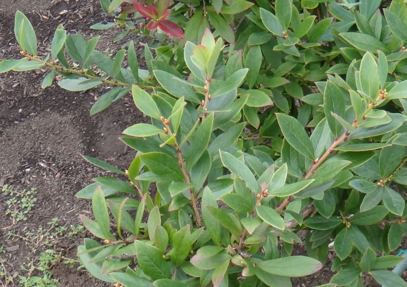 ブルーベリーの葉は、先の尖った楕円形で、ツツジに似ている。