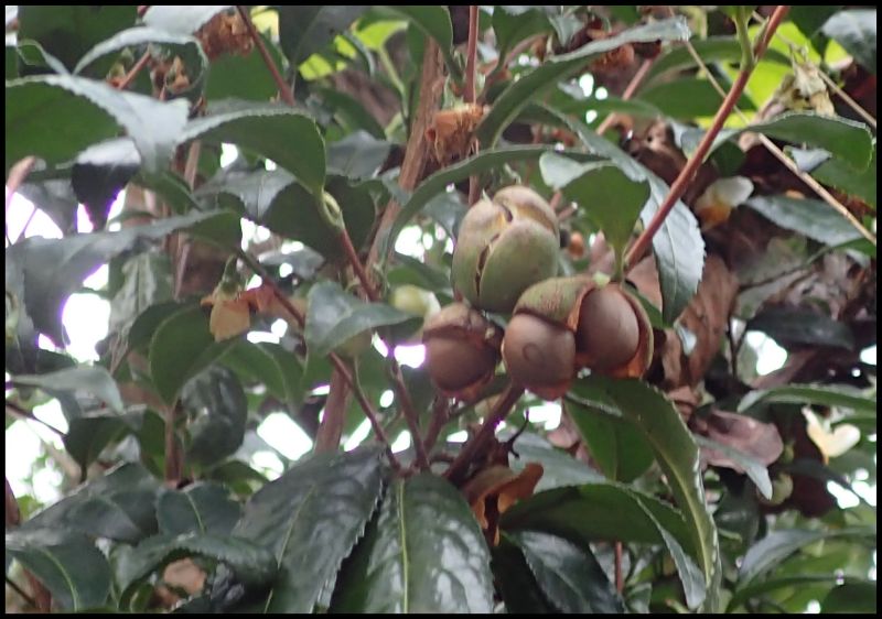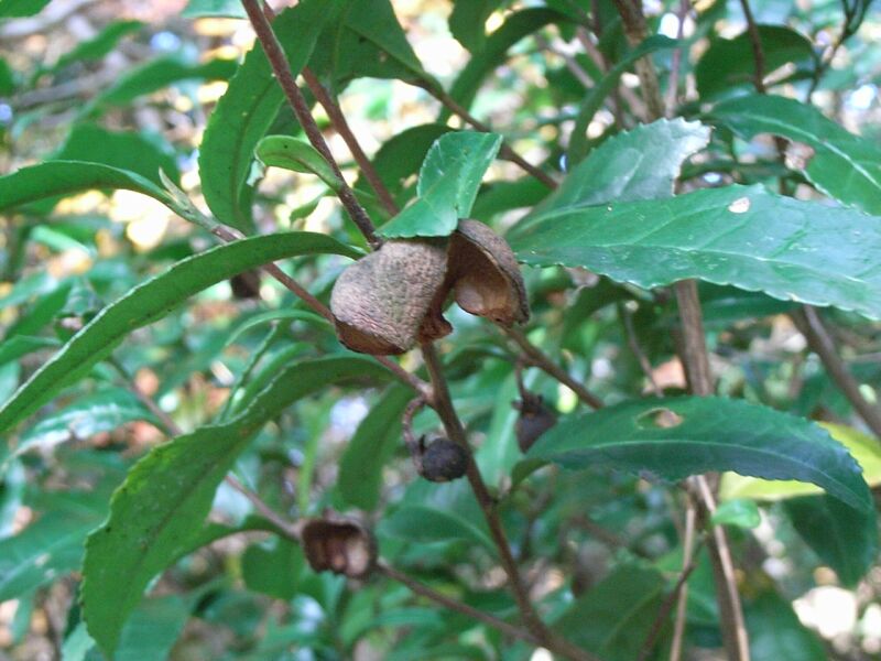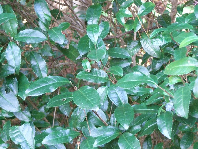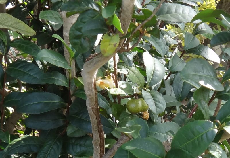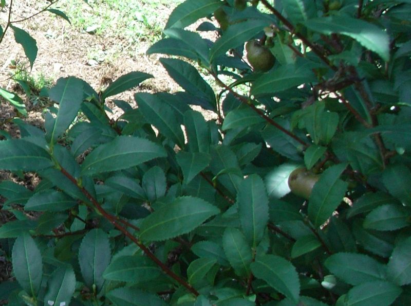 ツバキ属、常緑、低木。