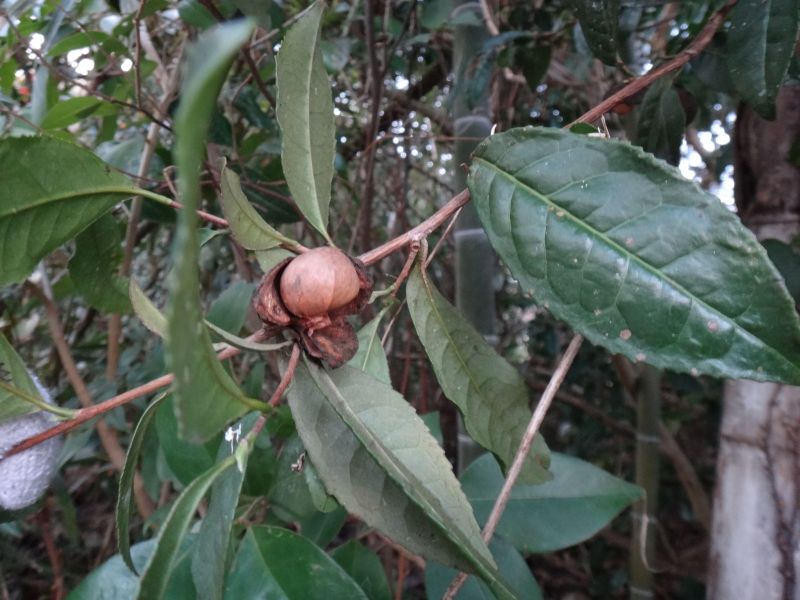 果実は直径1.5〜2センチの丸い朔果で、熟すと3裂し、
