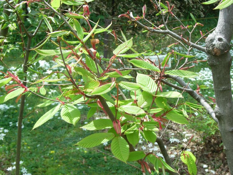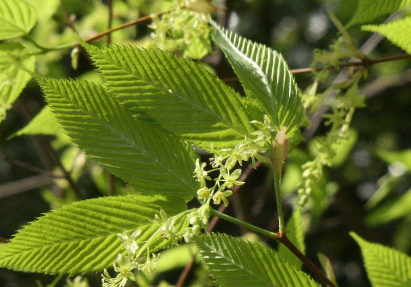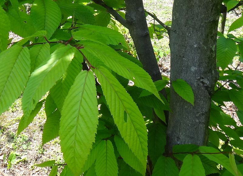 葉は卵状長楕円形で、先がとがり、重鋸歯があって、対生する。