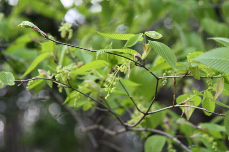 果実は翼果で、長さ2.5〜3センチの分果が対となって直角に開き、