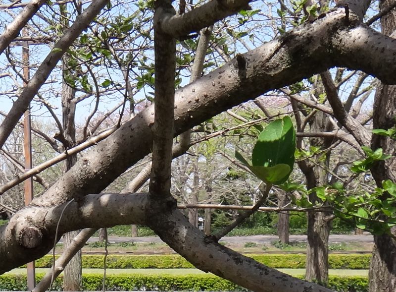 樹皮は灰褐色で、皮目がある。(2016/4/11)