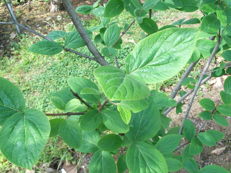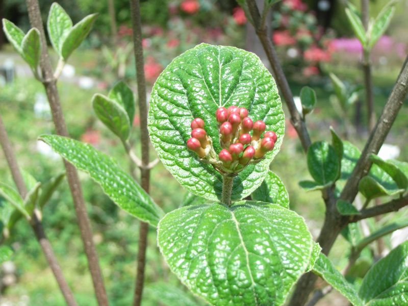ガマズミ :落葉、葉柄1センチで星状毛、葉先のとがり鈍い、浅鋸歯、若枝灰緑色。