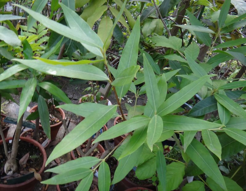 樹皮は白く、葉は細長く、革質で芳香があリ、