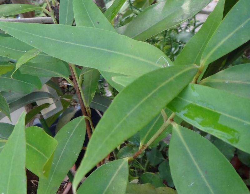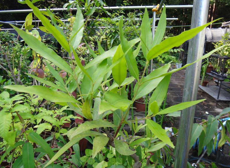 葉は長さ10〜20センチの披針形で、全縁であり、
