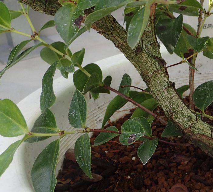 樹皮は縦にひび割れる。これはムニンフトモモ。