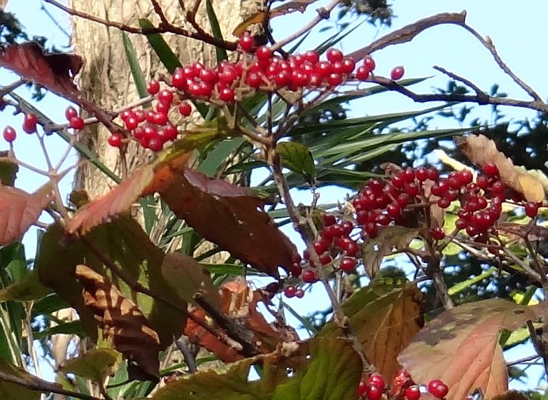 卵形の核果が散房状につき、真っ赤に熟して、食べることができる。(2012/11/8)