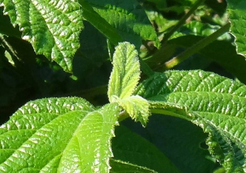 葉は長さ3〜12センチの倒卵形で、低い鋸歯があり、両面ともに毛があり、