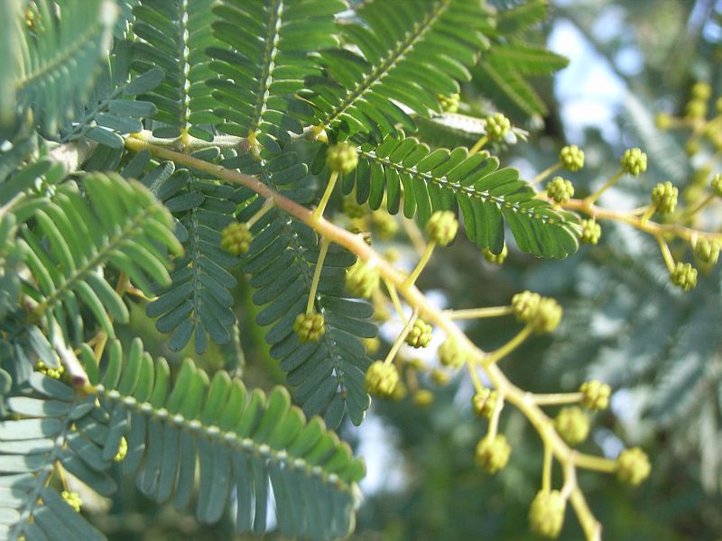 葉は偶数2回羽状複葉で、裏が銀緑色。