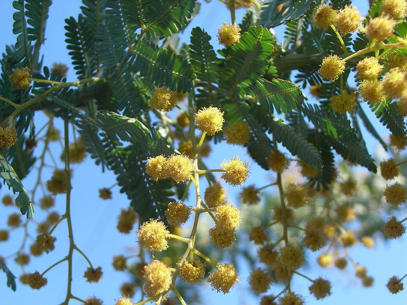 オジギソウ属(アカシア属の説もある)、常緑、中高木。