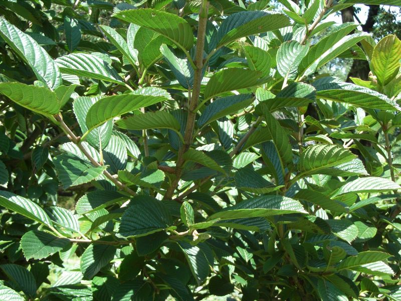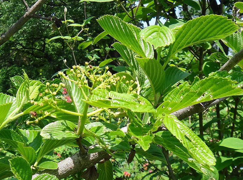 葉は対生し、倒卵状長楕円形で鋸歯があり、脈が表ではへこむ。