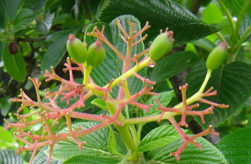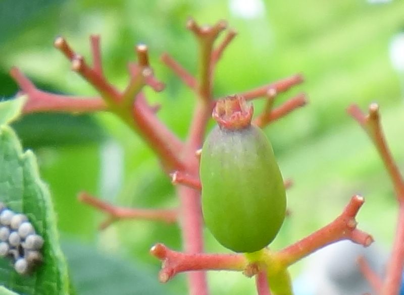 果実は長さ8〜10ミリの楕円形の核果で、8〜10月に赤くなり、
